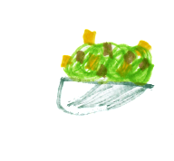Mange de la salade de fruits, du gâteau et des bonbons.