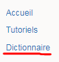 Pour créer un nouvel article à partir du dictionnaire il suffit d'ouvrir la page Dictionnaire en cliquant sur le lien dans le panneau latéral à gauche de la page.