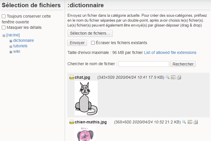 Seule la catégorie dictionnaire est importante pour nous. C'est là que l'on va envoyer nos nouvelles images.