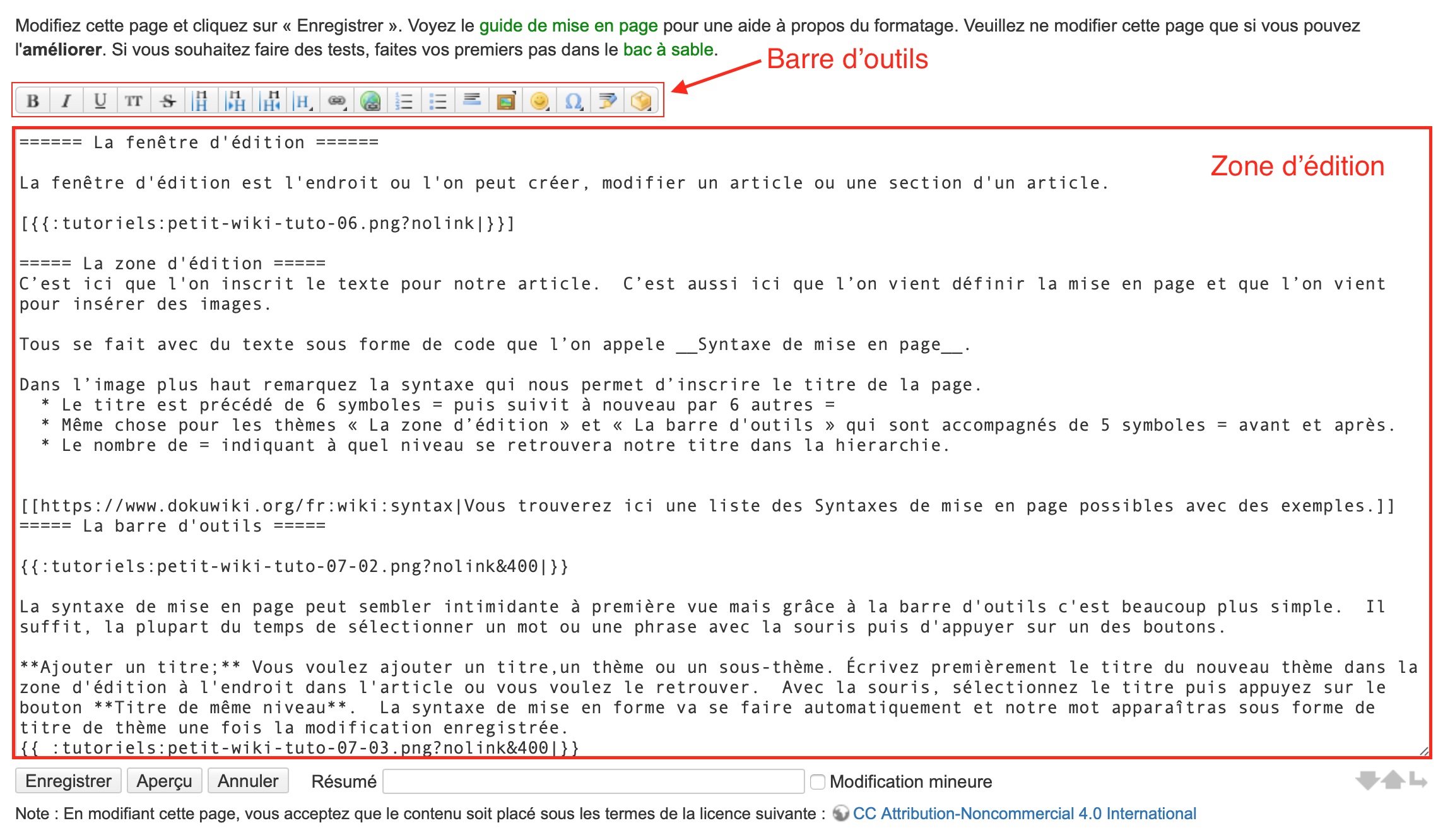 Grâce à la barre d'outils nous n'avons plus besoin de connaitre par cœur la syntaxe de mise en page mais seulement l'utilité de chaque boutons.